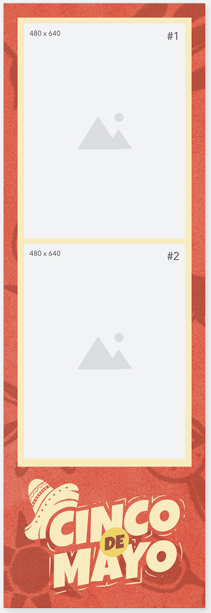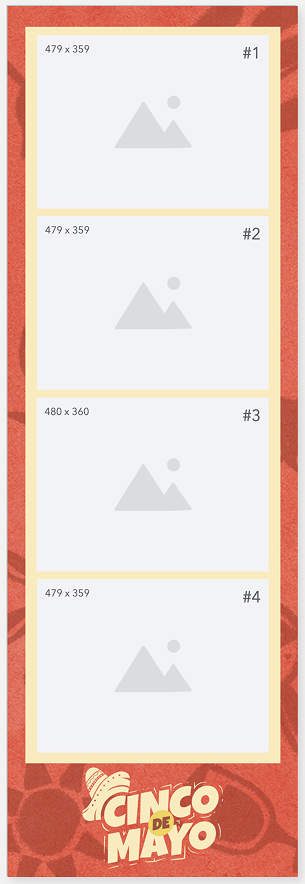 Traditional photo booth strip format. Great for keepsakes and guest books because of the smaller size. In this one above the 2 photos balance with the Cinco de Mayo branding. This could be great for brand activations and promotional use. Image your logo nice and large in the graphics area.
