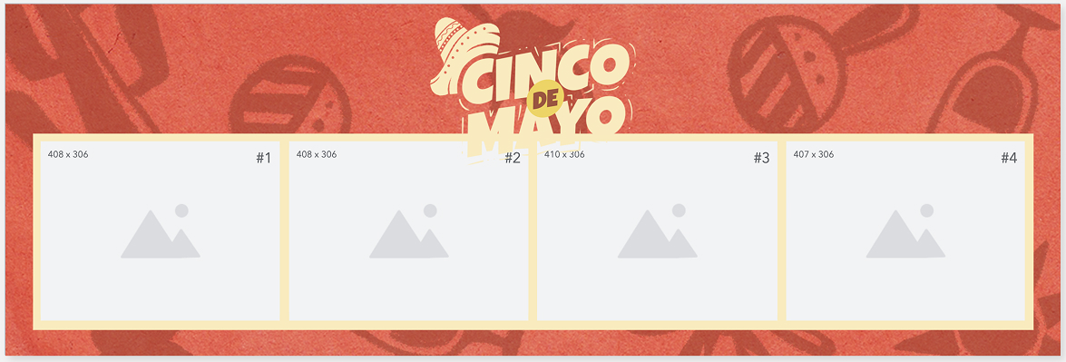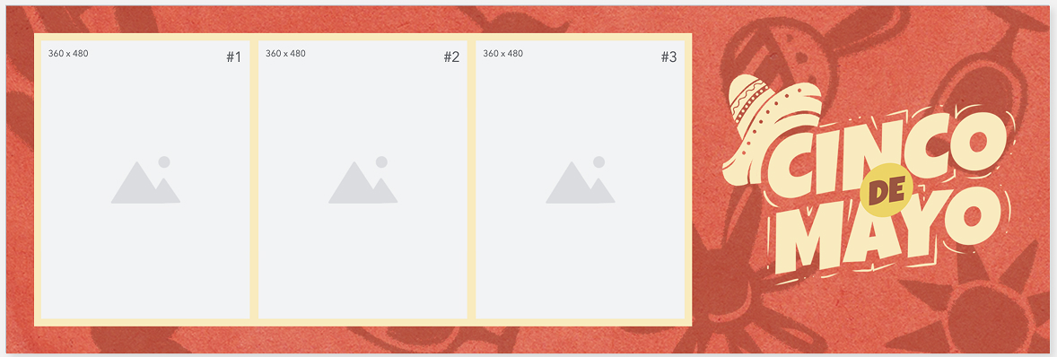 In this blog post, we are going to focus on a core theme-- Cinco De Mayo. The red pepper color and yellow sombereo are the main graphics. Each option here highlights the graphics in unique ways.